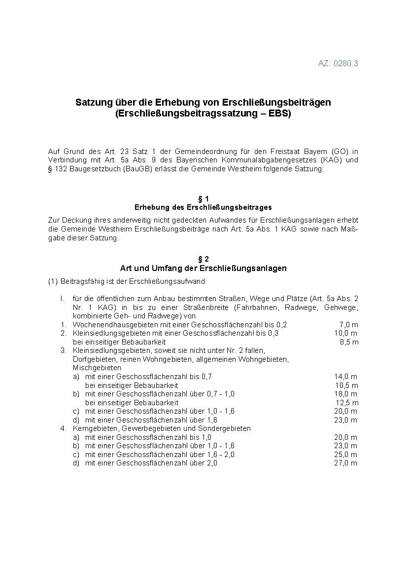 Satzung über die Erhebung von Erschließungsbeiträgen - Gemeinde Westheim ab 01.04.2016